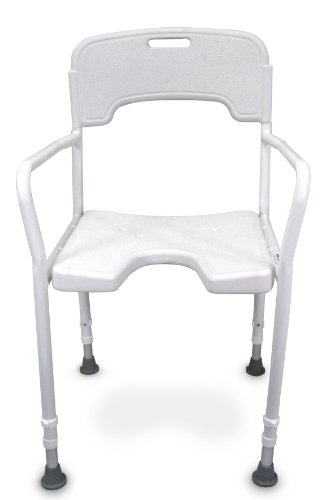 Douchestoel Donny (Drive DSR 130) met rugleuning en armsteunen (in hoogte verstelbaar) Douchestoel Donny DSR130 is een stabiele en praktische douchestoel waarmee u veilig onder de douche gaat. U kunt zelf de hoogte instellen van 45 cm tot 53 cm Gemak dient de mens en daar heeft men met het ontwerpen van deze stoel goed over nagedacht. De douchestoel Donny heeft 2 armleuningen waardoor u eenvoudiger en veiliger kunt opstaan en zitten. U kunt gemakkelijk uw persoonlijke en intieme hygiëne verzorgen doordat de douchestoel Donny een praktische inkeping heeft. Verder heeft het zitoppervlak gaatjes zodat het overtollige water makkelijk kan wegspoelen. De maximale belasting van deze douchestoel is 130 kg. Donny is uitgevoerd met rubberen doppen om verschuiving op de douchevloer te voorkomen en uw vloer geen schade ondervindt . De douchestoel Donny heeft een stabiele rugleuning en groot zitoppervlak voor uw comfort. Kenmerken * Comfortabel, zeker en stabiel * Groot zitvlak met waterafvoer * Hygiëne uitsparing * Standaard met armleggers en rugleuning * In hoogte verstelbaar in 4 stappen * Staat stevig door de rubberen doppen * Eenvoudig te reinigen * Weegt slechts 3,48 kg
