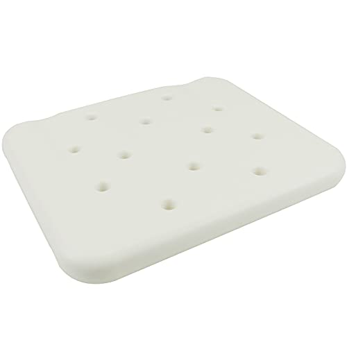 - Rechthoekig, gebogen rugleuning, ergonomisch zitvlak, afmetingen 41 cm x 17 cm, dikte 3 cm.