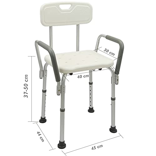 Specification: PrimeMatik – In hoogte verstelbare antislip douchestoel met armleuningen voor senioren