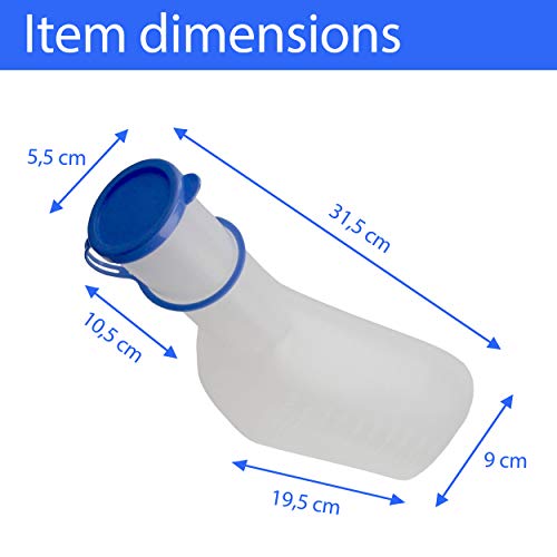 Lunata 1x Urinefles PP voor mannen (melkachtig) met sluiting, Urinoir, Urine Fles inhoud 1 Liter, autoclaveerbaar