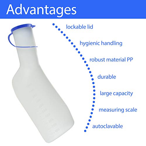 Specification: Lunata 1x Urinefles PP voor mannen (melkachtig) met sluiting, Urinoir, Urine Fles inhoud 1 Liter, autoclaveerbaar