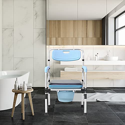 【Comfortabel te bedienen】De stoel met toilet biedt maximaal comfort door zijn brede zitting, comfortabele armleuningen, in hoogte verstelbare poten en het deksel. Ideaal voor oudere of gehandicapte mensen om zich op het comfort te concentreren. Deze stoel maakt zelfverzorging gemakkelijker toegankelijk.