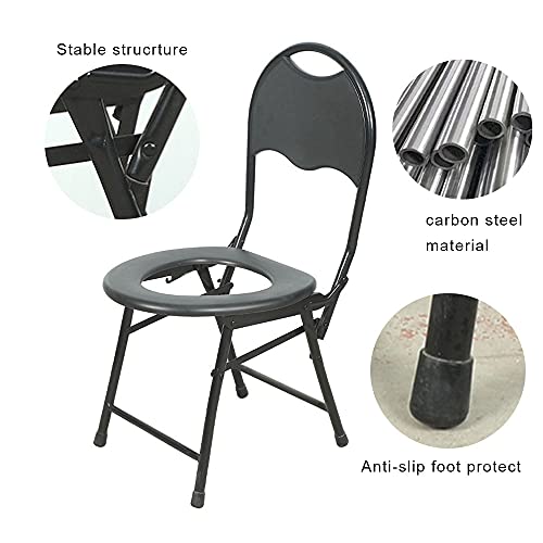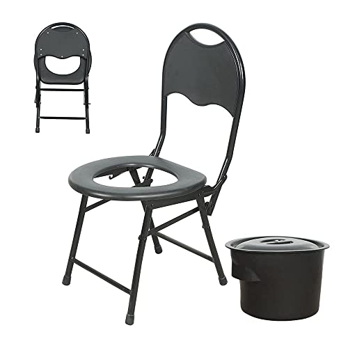 PEALOV Toiletstoel, inklapbaar, draagbaar, inklapbaar, campingtoiletstoel met rugleuning, lichte toiletten stapelcommode voor camping buiten, portapotjes voor ouderen of gehandicapten