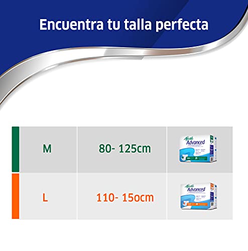 Affective Advanced luier voor volwassenen met anatomisch design, super absorberende kern, elastische been- en taille, lekvrije barrières, herbruikbare kleefpads en vochtweergave, speciaal ontwikkeld voor ernstig urineverlies. Verkrijgbaar in de maten M (80-125 cm/7 druppels) en L (110-150 cm/8 druppels). Hoe kies je de juiste maat? Om te bepalen welke afmetingen het product voor de betreffende persoon is, raden wij je aan om de volgende stappen te volgen: 1. Meet je taille en heupen 2. Neem de grotere maat en controleer de afmetingen in cm van de productverpakking. 3. Als de persoon in bed is, de heupbotten identificeren en de afstand van de ene naar de andere meten, vermeng dan 2 en voeg 5 cm toe om de uiteindelijke meting te behouden.