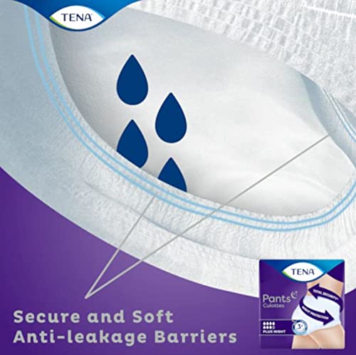 Betrouwbare bescherming: de TENA Pants Plus Night, ontworpen voor grote lekken, biedt drievoudige bescherming tegen lekkage, nat gevoel op de huid en onaangename geurtjes. Maat: L.