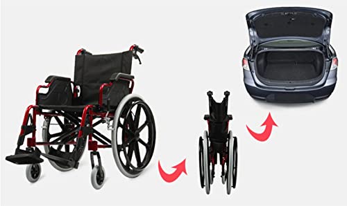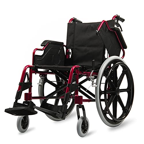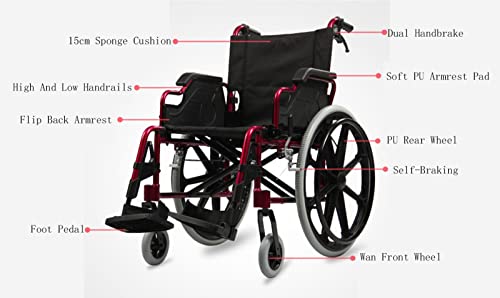 Specification: Rolstoel, Opvouwbare Zelfrijdende Rolstoelen Transport Sport Rolstoel met Remhendels, Voetsteunen en Rugleuning voor Ouderen Red,One Size