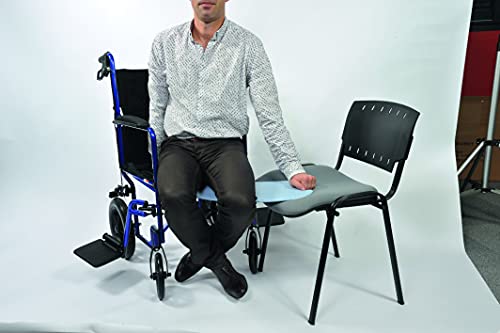 Afgeronde hoeken: voor een betere hefboomwerking is het transferbord uitgerust met 2 uitsparingen voor het ophangen van de stoelbuizen. De twee uiteinden aan de onderkant zijn met een antislip materiaal omspoten, waardoor de overdracht van gladde oppervlakken mogelijk is